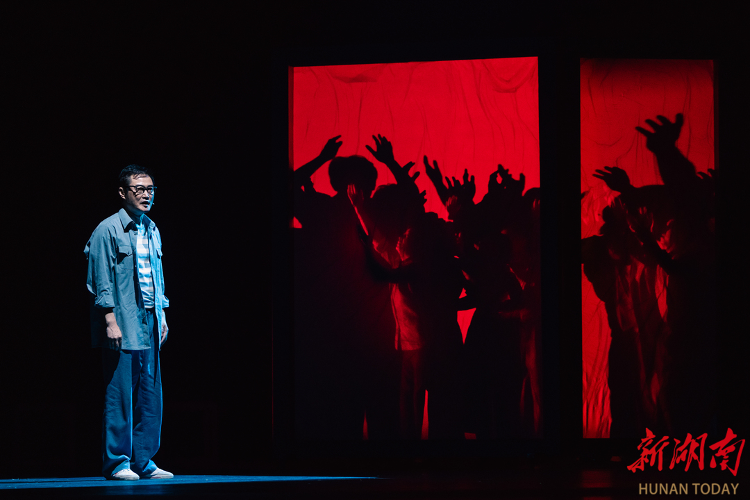 开场和结尾时,响起的戏曲念白含有湘剧元素,人物台词带有湖南话的腔调,都让话剧有浓浓“湘味”。但当剧中的医学专家“舒少华”开口说话时,让观众席有了小小的骚动:他说的,是重庆话!