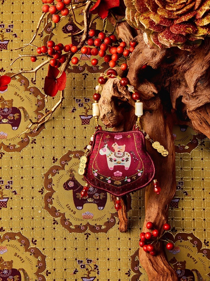 在香囊方向,野兽派推出三款庆阳刺绣手工香囊,分别以「马上有柴」「马上有对象」「马上封猴」为题,将“财气随行”“良缘相随”“步步高升”等新岁祝意绣入针脚;单品均可独立选购,亦适合作为随礼之选,悬挂包袋、家中或车内,让吉语与香意一路相随。