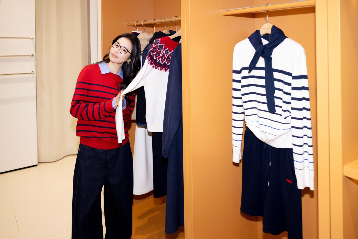 快闪以「此刻诗篇」为主题,通过叙事化灵感,将复古主义、极简经典、趣味时尚与摩登文化交织共生,共构出兼容并蓄的多元场域。周雨彤身穿PSALTER诗篇2025冬日新品亮相现场,蓝色衬衫与红色条纹毛衫的巧妙叠搭,明媚点亮欢聚时刻,既书写摩登语境下的混搭美学,亦流露书卷气息中蕴藏的智性姿态,恰如其分地诠释了品牌的内核。