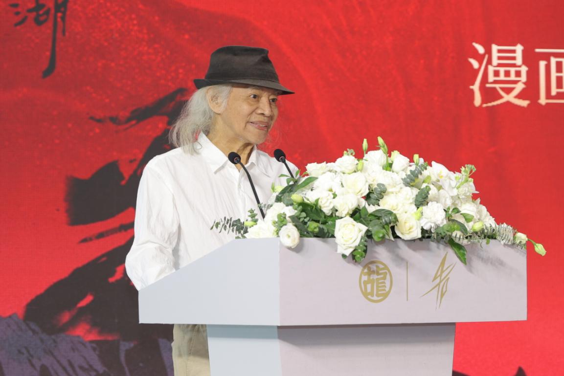 在启动仪式上,艺术家蔡志忠与网易执行总裁、中国武侠文学学会副秘书长、古龙IP游戏开发者胡志鹏先后发言,展现古龙IP从文字到图像乃至数字形式的跨界魅力。蔡志忠以其独特的艺术视角,讲述首本武侠漫画《绝代双骄》的故事,分享其在创作历程中的所思所感。胡志鹏则立足时代前沿,以“古龙武侠精神与数字化未来”为题,为经典文化在当下时空的活化运用开辟了全新的想象空间。