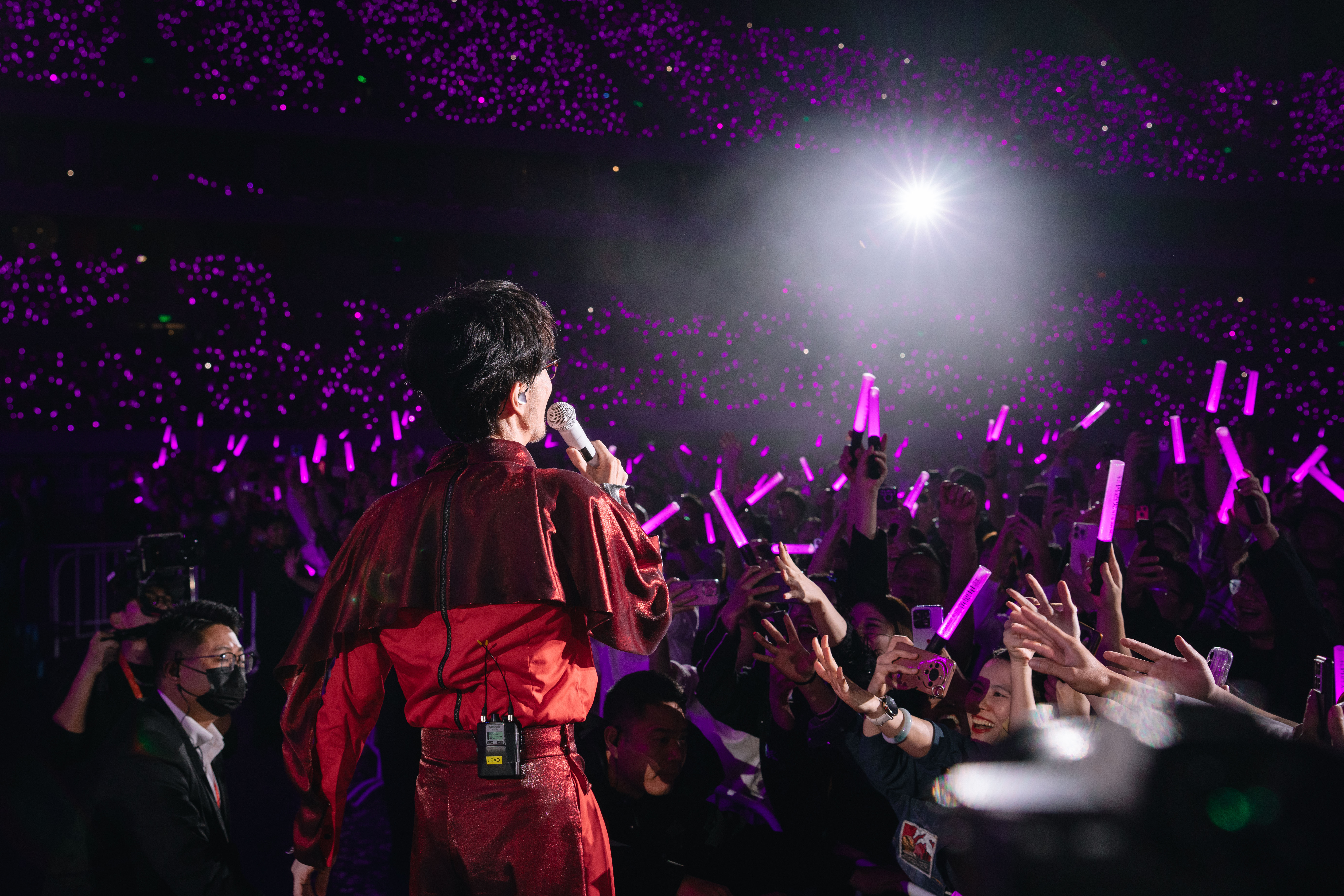 来到素有“握手之城”的热情南宁,小刚老师更是把宠粉做到极致,首次走下舞台、走进观众区,与大家“贴脸”互动,零距离握手。歌曲《幸福的瞬间》间奏,小刚老师走在延伸台一侧的通道中,一边忙着跟大家握手打招呼,还当场爆出时下流行的网络金句——“握完你的握你的,握完你的握你的!” 即兴的诙谐幽默,引来全场爆笑。当然,作为一个身经百战的歌手,各种状况还是在小刚老师掌控之中,在短暂的间奏里迅速照顾了一整排的歌迷朋友,将“谁都不怠慢”的贴心周到贯彻到底。
