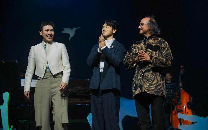 《月光动物园》音乐会以四个乐章展开:月光、银河、深夜与拂晓,把阿龚不同时期的作品串成一段在夜色中前行的旅程。开场曲《The Moonlight Zoo》一下,磅礴的钢琴搭配弦乐五重奏先铺开第一层月色;从《冬 未了》就与苏打绿结下十年情谊的 Bernd 也在这首作品中担任指挥,并亲自吹起萨克斯风,用交响乐的气势替整座动物园正式开门。进入钢琴独奏段落,黑白琴键落下,思念便像月光缓缓渗进剧场。《Fade, fade away》、《Stairway to Light》等新专辑中的动人作品接连登场,不少观众还没坐暖就已悄悄拭起眼泪。全场编排序穿于钢琴+五重奏的层次堆叠、钢琴与管乐的友情对话,与节奏活泼的中提琴小品之间,让立冬的北京夜在音符里显得既缤纷又柔软。