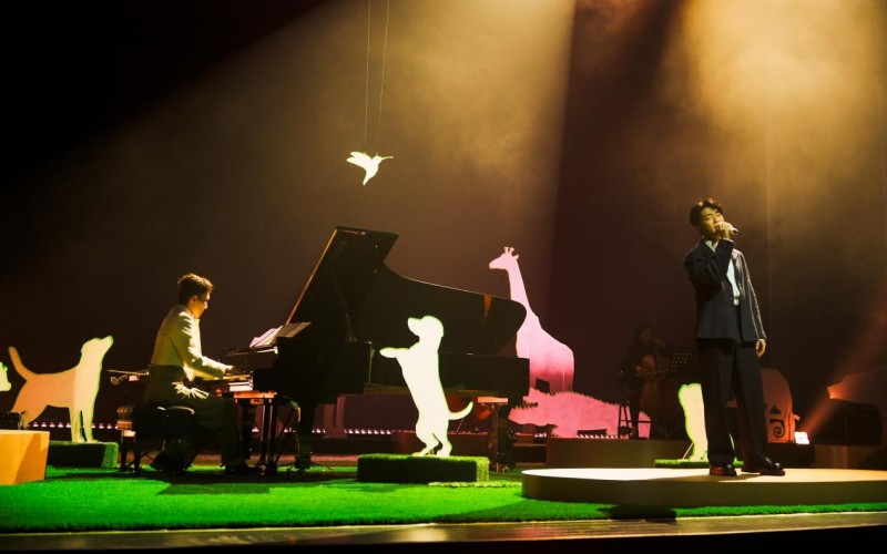 龚钰祺《月光动物园》暖心启航!首站于上周末11/7、11/8温暖开演,曝光许多惊喜,舞台上除了阿龚三只爱犬化为荧光宠物,也让陆海空二十多种动物北极熊、狼、长颈鹿、海豹...等在绿色草皮舞台的幻境中现迹。最惊喜的动物到访者则是嘉宾“韦鸟”韦礼安特地飞来共演,与阿龚携手带来三首弦乐改编歌曲。这座动物园里的人也各就各位:远从德国飞来的 Bernd 兼任指挥与萨克斯风手,而苏打绿团员馨仪担任节目导演、小威担任录音指导陪着孩子小 Moon 完成每段乐章的真挚引言,全场琴声与啜泣声此起彼落。