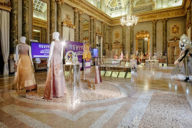 当历史的针脚缀入现代的剪裁,当东方的丝绸映耀西方的珠宝,一场跨越时空的对话在光影间悄然苏醒。“相逢·宴会”展区以“开放与包容”为基调,通过服饰、珠宝与数字艺术作品,重现文明相遇的璀璨时刻,仿若开启多元文化的初遇之旅。
