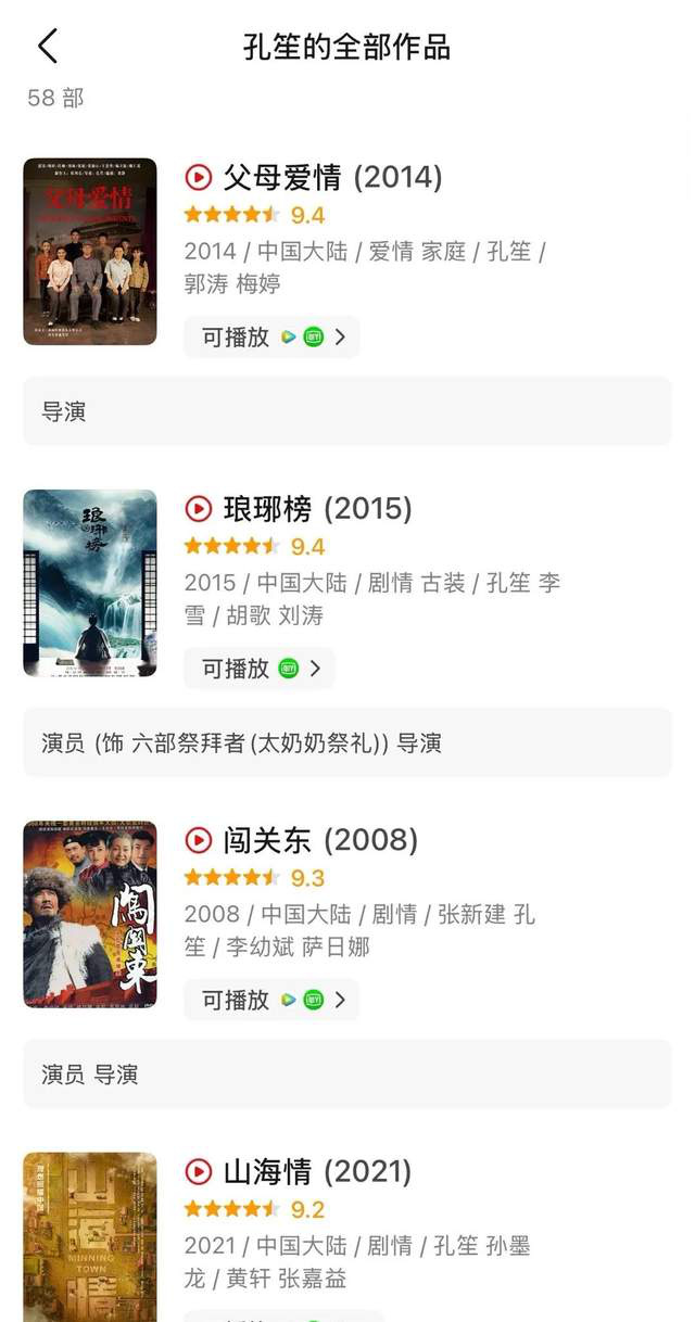 拉一下孔笙导演的作品列表,一部都没看过的都有点说不过去了。从循环播出的电子榨菜《父母爱情》、过去十年的古装天花板《琅琊榜》到任务剧都能满分答卷的《山海情》,他的名字已然是品质的代名词。