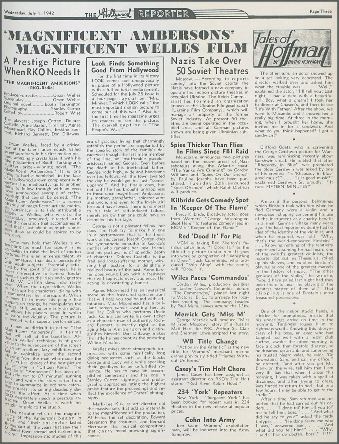 △《好莱坞报道》 1942年7月对《伟大的安巴逊》的评论