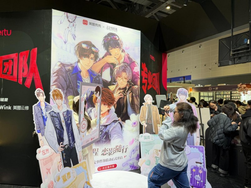 不止于高效有趣的AI玩法,美图公司还围绕年轻群体的内容创作需求,设置了产品体验区,助力用户以技术激发创作热情。同时,美图秀秀与高人气游戏《未定事件簿》展开合作,通过主题展陈、联名物料发放等方式,搭建起影像产品与二次元文化的沟通场景。