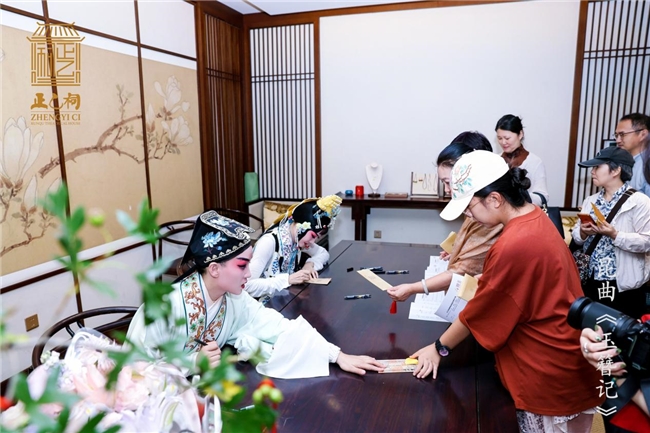 演出落幕并非结束,正乙祠戏楼还为观众准备了专属新年福利:演出结束后,可与张媛媛、翁佳慧合影,定格与“陈妙常”“潘必正”的同框瞬间,并获得演员亲签。