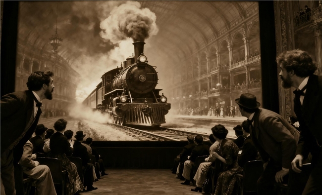 当火车迎面驶来,有人下意识后退。电影最初的魔法,是陌生人在同一时刻相信同一件事,成为共同体。