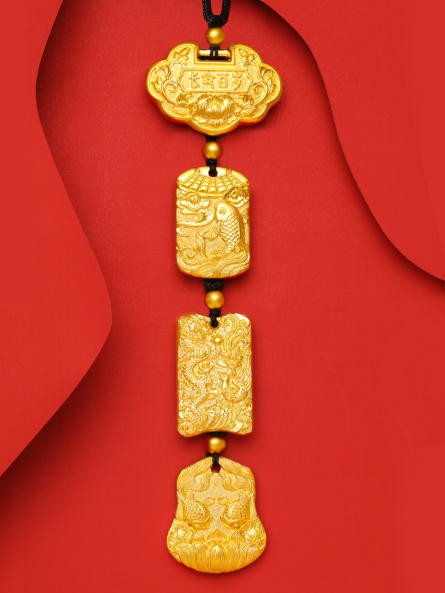 万春纳福系列“赑佑”足金饰品:以中国传统神话中“龙九子”赑屃为原型,通过艺术化提炼还原其“龙头龟身麒麟尾”的经典形象。在细节处融入吉祥纹路,既保留了神话符号的庄重感,又通过流畅的线条让传统形象更贴合现代审美,传递出“守护安康”的美好寓意。